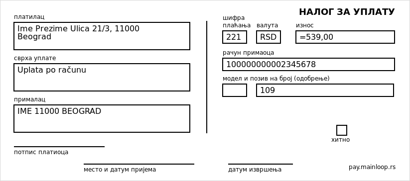 "purpose": "Uplata po računu",